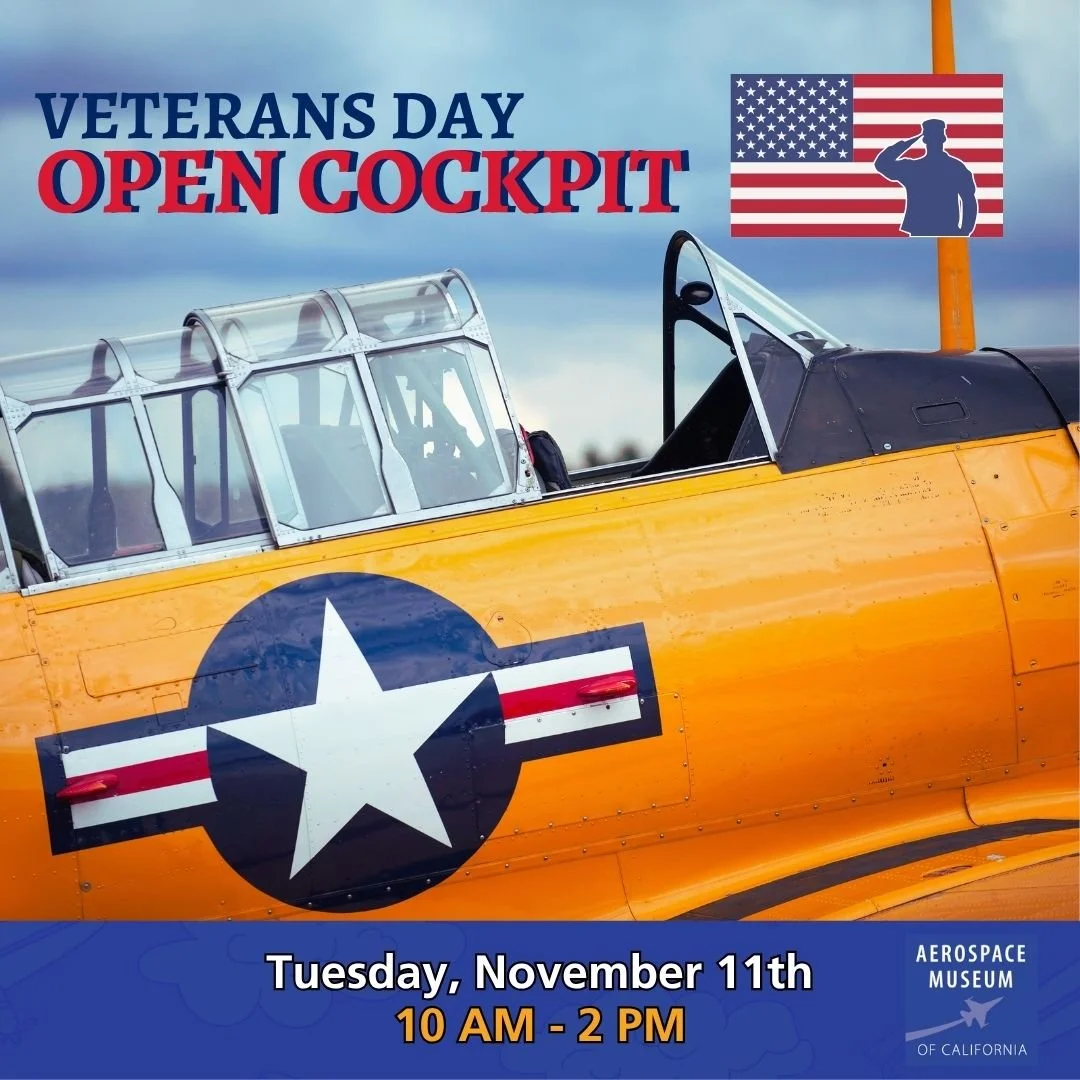 Get ready for a day of fun and excitement as we celebrate Veterans Day at the Aerospace Museum of California! Climb into the cockpits of amazing historical aircraft and imagine yourself as a pilot soaring through the skies.