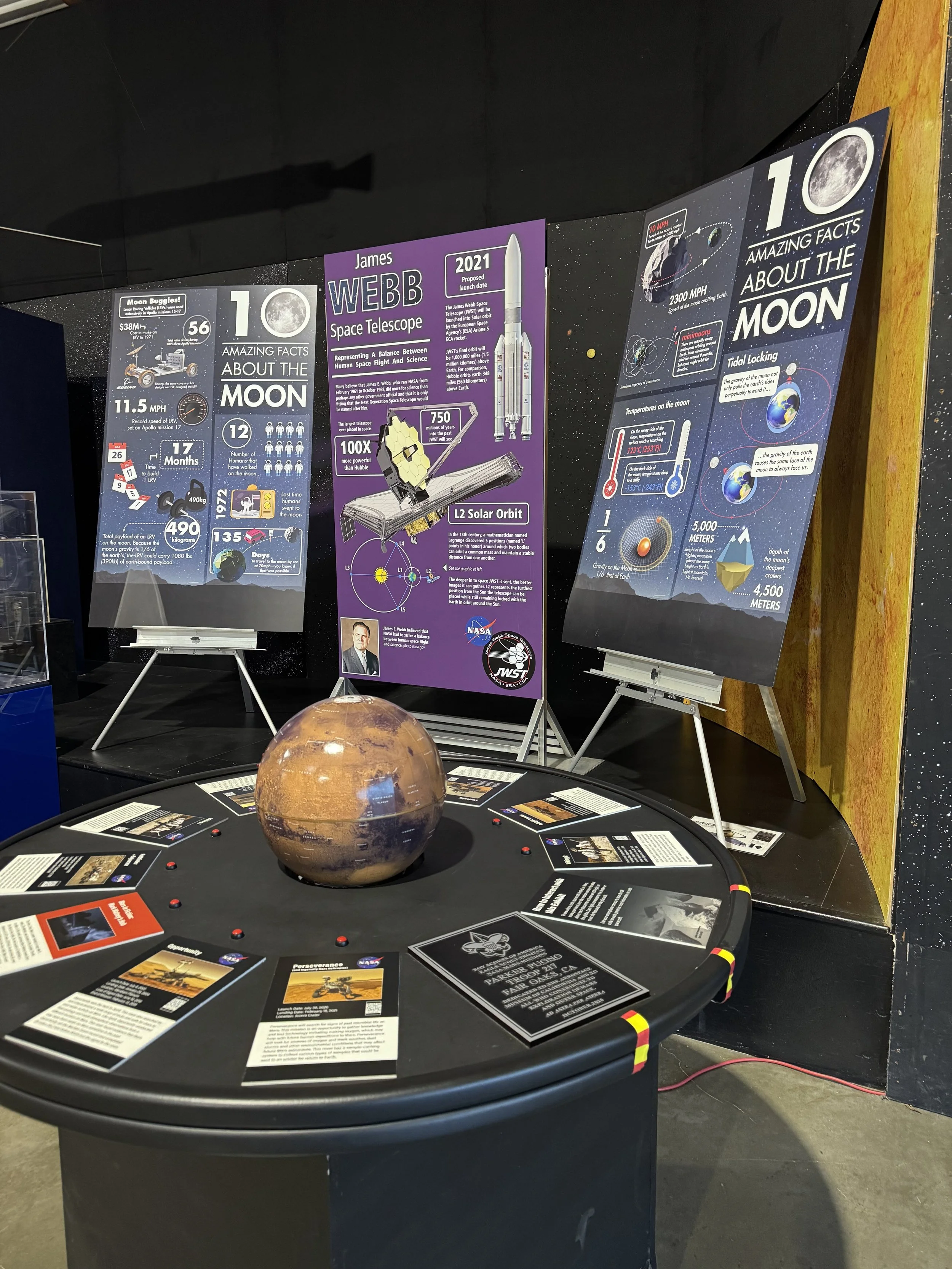 We have various space exhibits and experiences to help you explore! Check out our Nasa Theatre where you can learn about Mars Exploration.
